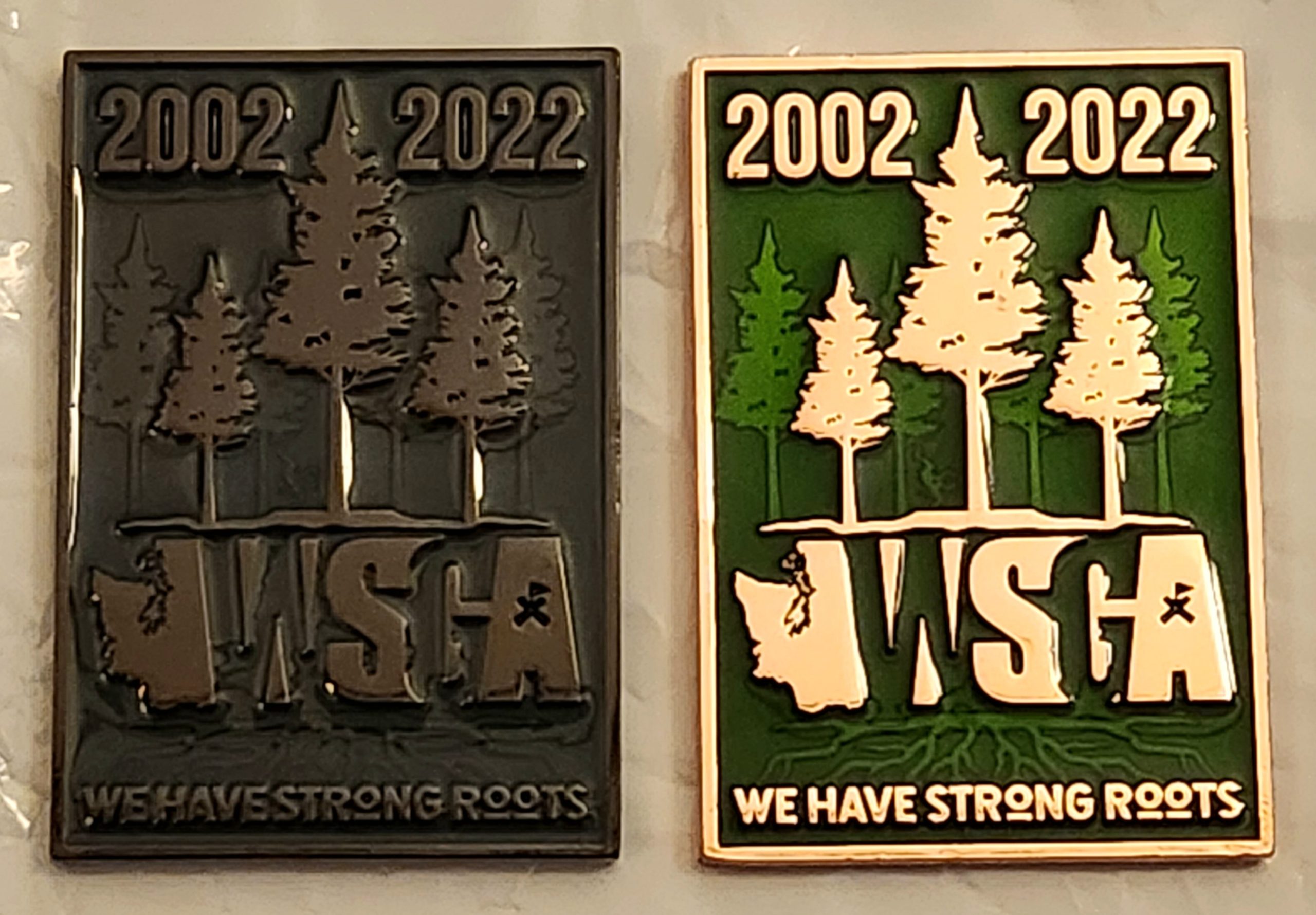 To commemorate WSGA 20th anniversary, we have minted two beautiful coins with our “deep roots” image on the coin. Â